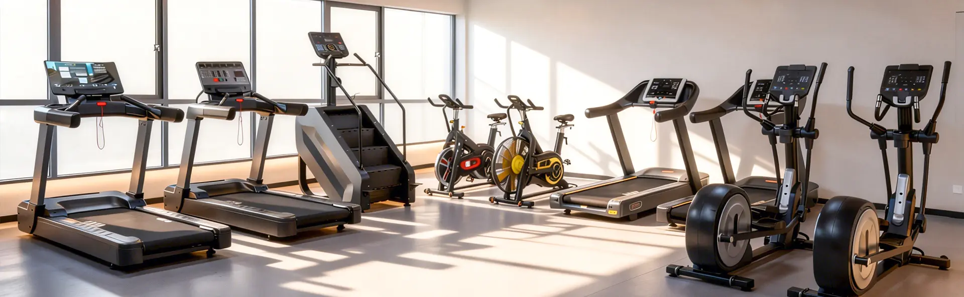 تجهیزات معمول هوازی عبارتند از: تردمیل، دوچرخه ورزشی، استپر، دستگاه های بیضوی، پله نوردان، دوچرخه های اسپینینگ، دستگاه های قایقرانی، دستگاه های اسکی، کراس اوورهای کابلی، دستگاه های ایستاده دستی، شبیه سازهای موج سواری و غیره.